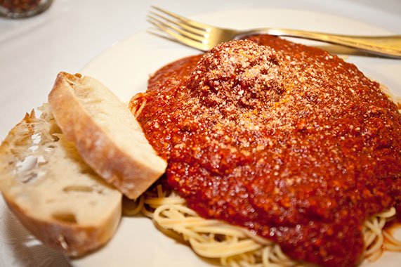 But if she served nothing else, lines would form for Anna’s meat sauce. Simmered with ground beef and pork, a velvety sweetness comes from the best ingredients cooked for just the right amount of time. And marinara sauce—tomatoes, basil, garlic and fragrant olive oil—is quickly sauteed and ready in the time it takes for the spaghetti to cook. All very simple.